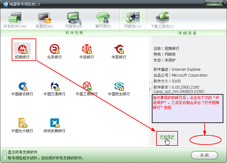 自去年底“瑞星殺毒軟件2008版”推出以來(lái),受到了廣大用戶的熱烈追捧。該產(chǎn)品以“智能主動(dòng)防御”技術(shù)為核心,可以徹底查殺目前流行的100余萬(wàn)個(gè)盜號(hào)木馬、后門(mén)等,還不斷推出并升級(jí)新的技術(shù)應(yīng)用。近日,“瑞星殺毒軟件2008”獨(dú)有的“賬號(hào)保險(xiǎn)柜”功能模塊已升級(jí)到2.0版本,除了全面保護(hù)網(wǎng)絡(luò)游戲、網(wǎng)絡(luò)銀行、即時(shí)通訊軟件200款常用軟件之外,特別增加了對(duì)網(wǎng)上銀行的網(wǎng)頁(yè)保護(hù),其中包括中國(guó)工商銀行、中國(guó)建設(shè)銀行等10余款網(wǎng)上銀行的網(wǎng)頁(yè)。