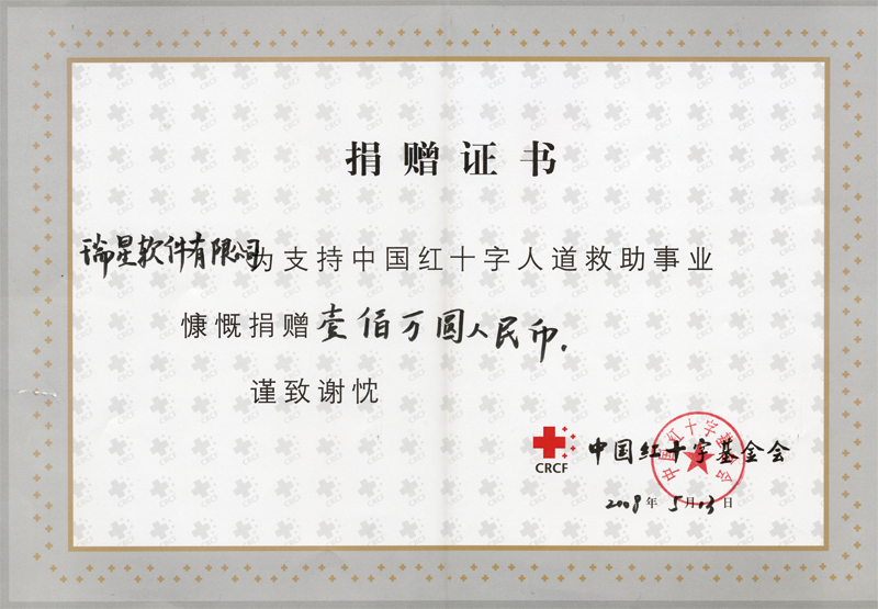 瑞星公司向四川地震災(zāi)區(qū)捐款100萬(wàn)元