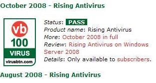 雙喜臨門 瑞星連續(xù)通過VB100和西海岸測試