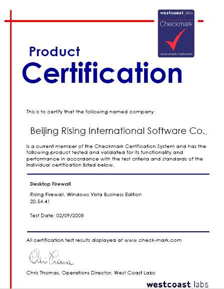 此前,瑞星防火墻順利通過了Windows? Vista平臺下的Checkmark認(rèn)證,成為全球第三家、國內(nèi)首家通過該認(rèn)證的防火墻產(chǎn)品。