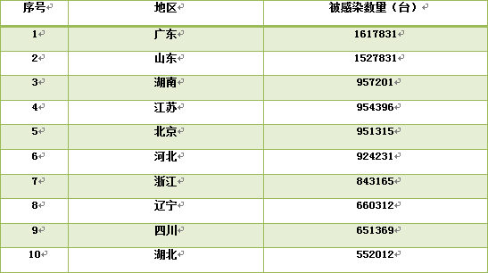 12、各個(gè)地區(qū)受惡意網(wǎng)站影響度排行