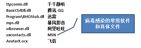 病毒運行后會感染大量常用軟件中的特定動態庫,不添加任何注冊表啟動項,手段較為新穎,隱蔽性極強。由于該病毒假冒的是“賽博QQ”,用戶數量巨大,所以近期該病毒的感染量激增,專家預測,該病毒很可能成為“五一”期間的“毒王”。
