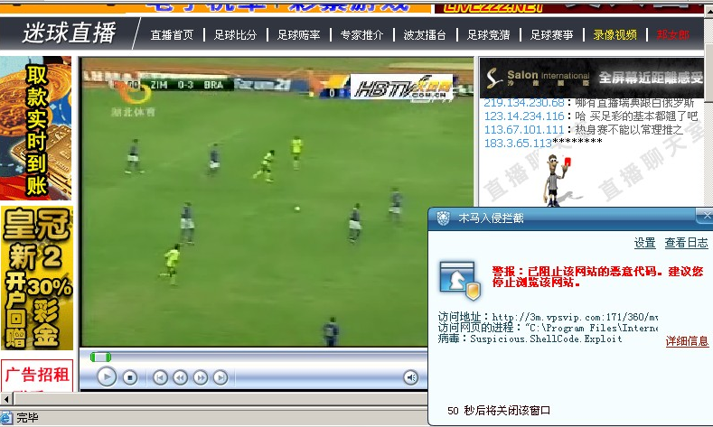 (瑞星殺毒軟件成功攔截某視頻網站中的惡意代碼)