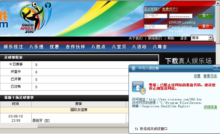 世界杯賽前“黑”“馬”先行 瑞星發現世界杯掛馬網站