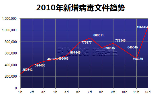 圖1瑞星每月截獲新增病毒文件數量曲線圖