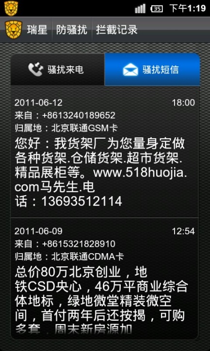 拒絕垃圾短信騷擾電話 瑞星手機(jī)安全軟件全搞定