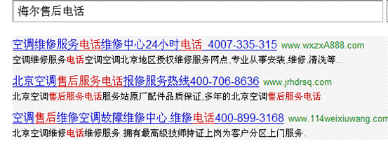 (搜索海爾售后,結果中卻是真偽難辨的一堆400電話)