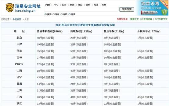 (大學列表:http://hao.rising.cn/catalog/edu.html )
