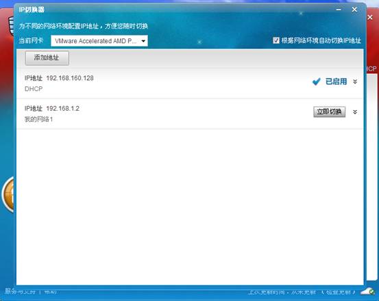 當筆記本在公司使用的時候,可以點擊“立即切換”即可把IP切換到內網狀態。