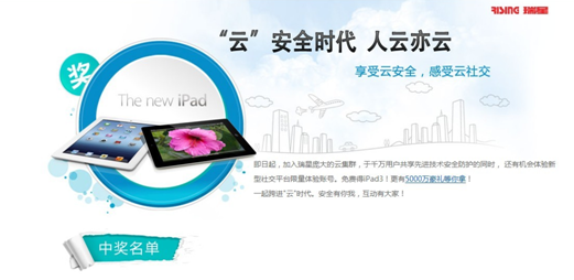 瑞星攜手云云打造完美“云”體驗 免費得iPad3
