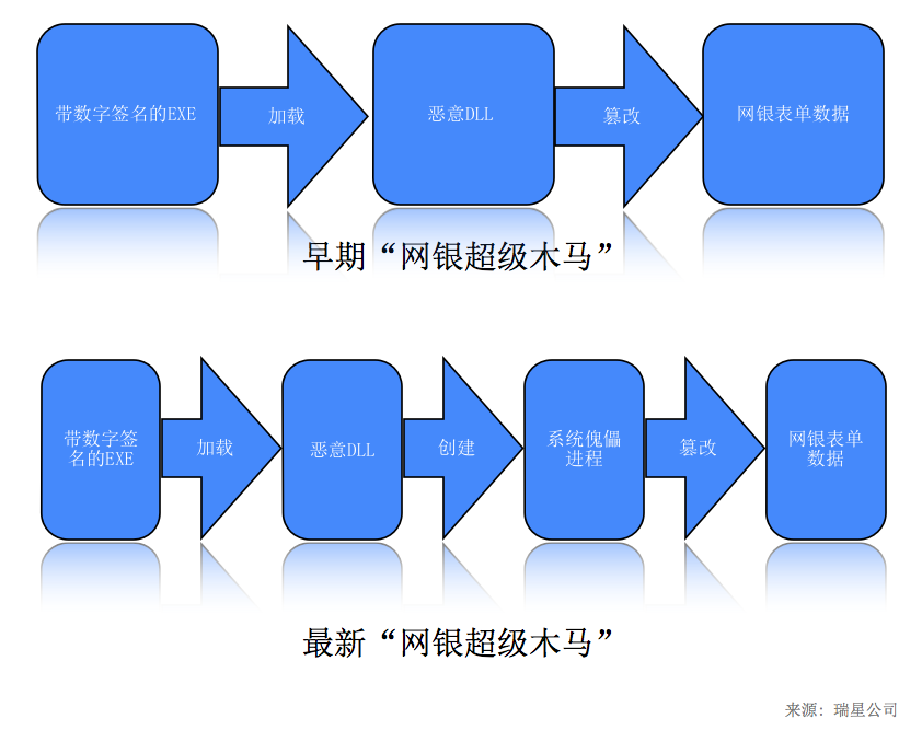圖3:“網(wǎng)銀超級(jí)木馬” 最新變種行為流程對(duì)比圖