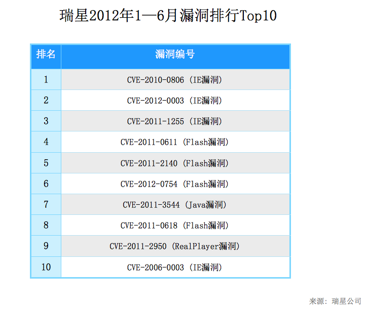 圖5:2012年1-6月漏洞排行Top10