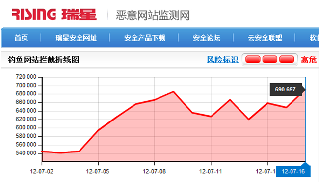 數(shù)據(jù)顯示,進(jìn)入7月以來(lái)釣魚網(wǎng)站的攻擊次數(shù)呈明顯增加趨勢(shì)