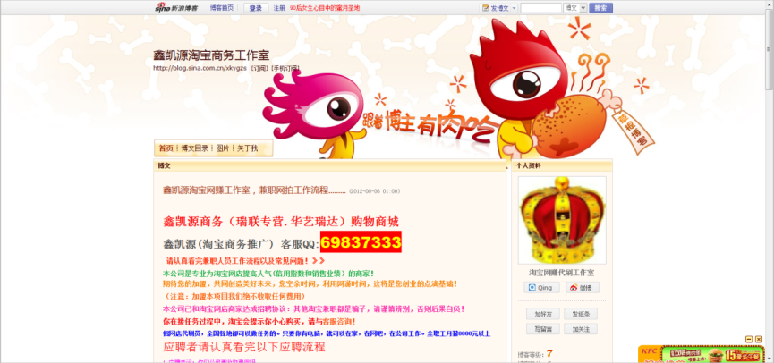 圖2:假“網(wǎng)賺兼職”的“官方博客”頁(yè)面