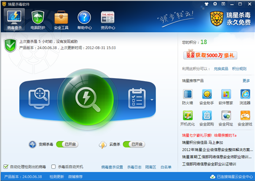 新推出的瑞星殺毒軟件V16界面清新,操作簡(jiǎn)便易上手