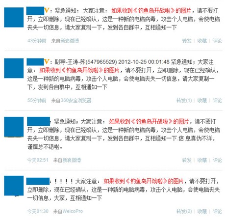 微博上瘋傳“《釣魚島開戰(zhàn)》圖片是病毒”的謠言