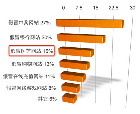 圖1:今年1-3月間,假冒醫(yī)藥類網(wǎng)站占釣魚網(wǎng)站上報總量的15%