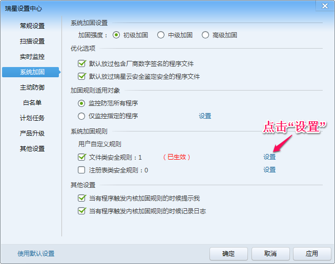 我們可以通過(guò)瑞星V16+的系統(tǒng)加固功能,禁止除比特幣錢(qián)包程序以外的任何程序訪問(wèn)Wallet.dat文件,從而達(dá)到保護(hù)錢(qián)包數(shù)據(jù)的目的。