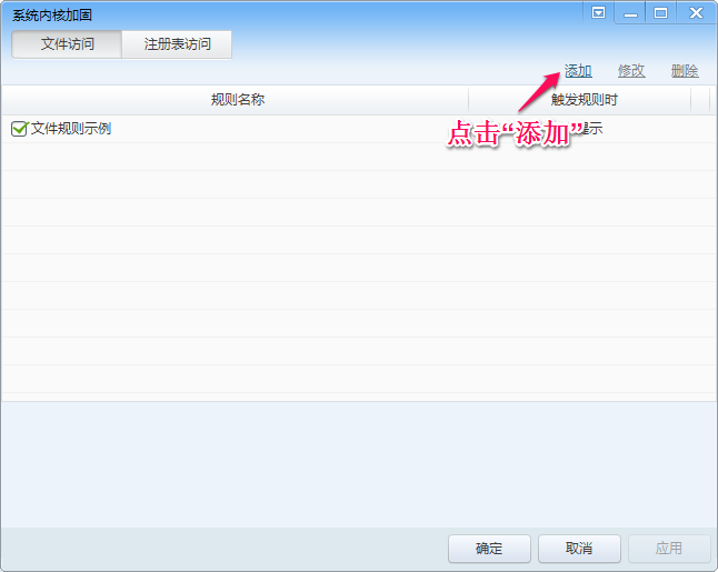 5、點(diǎn)擊右上角的“添加”,打開(kāi)“添加文件規(guī)則”窗口。
