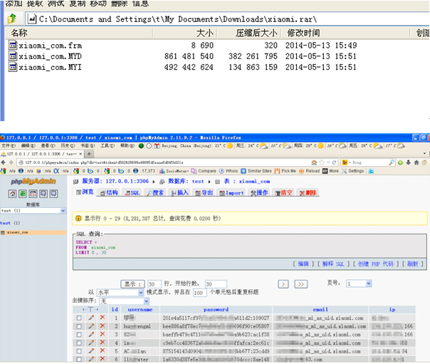圖3:網(wǎng)民提交的小米論壇用戶信息數(shù)據(jù)庫