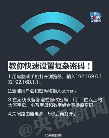 圖5:央視微博上關(guān)于修改路由器管理密碼的技巧