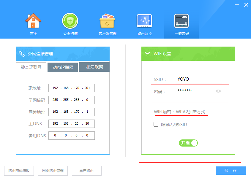 圖6:利用瑞星路由安全衛(wèi)士的一鍵管理功能,即可輕松修改路由器密碼