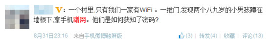 圖1:微博大V爆料連村子里都有人蹭網(wǎng)