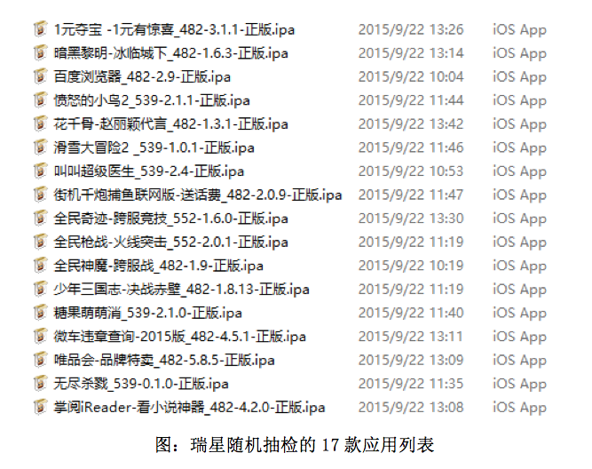 根據(jù)之前網(wǎng)上爆出的名單來(lái)看,受感染的應(yīng)用已經(jīng)數(shù)百個(gè)。瑞星安全研究人員在XY蘋果助手的市場(chǎng)下載了17款應(yīng)用,列表如下: