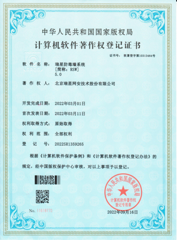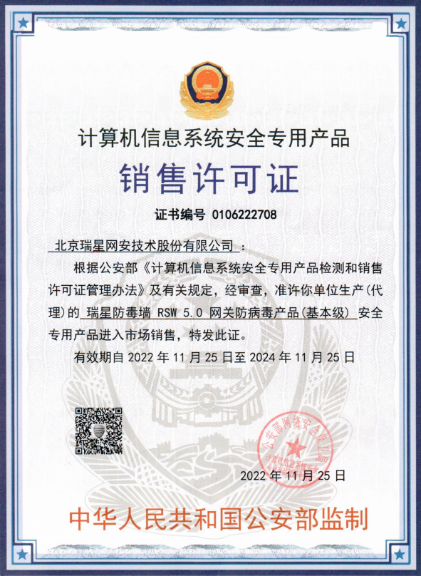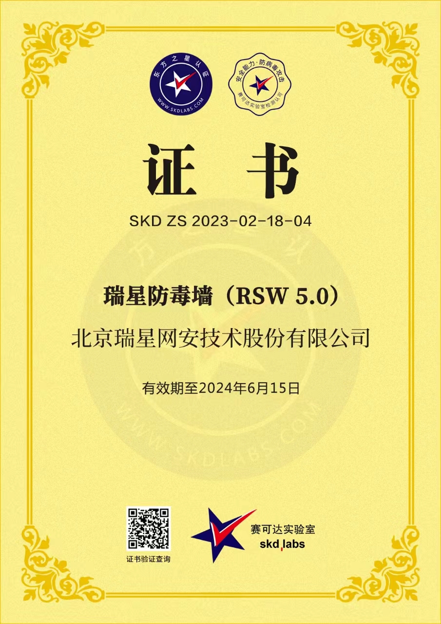 瑞星防毒墻 2023-06-14 賽可達認(rèn)證 2023-03-01 賽可達優(yōu)秀產(chǎn)品特別獎 2023-03-01 2022年度賽可達優(yōu)秀產(chǎn)品獎 2022-12-01 計算機軟件著作權(quán)登記證書 2022-11-25 銷售許可證 2022-11-22 信息技術(shù)產(chǎn)品安全測評證書 首頁 上一頁 1 2 3 4 5 6 7 下一頁 尾頁