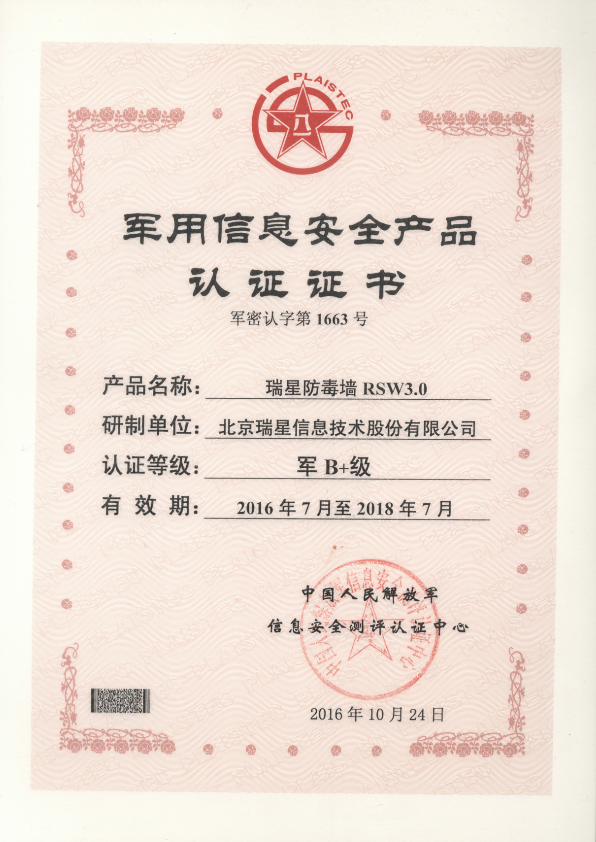瑞星防毒墻 2018-01-18 賽可達(dá)優(yōu)秀產(chǎn)品特別獎(jiǎng) 2018-01-18 賽可達(dá)2017年度優(yōu)秀產(chǎn)品獎(jiǎng) 2017-09-20 瑞星防毒墻 東方之星安全認(rèn)證 2017-01-11 賽可達(dá)2016年度優(yōu)秀產(chǎn)品獎(jiǎng) 2016-10-24 軍用信息安全產(chǎn)品認(rèn)證證書 2016-09-05 瑞星防毒墻 東方之星安全認(rèn)證 首頁 上一頁 2 3 4 5 6 7 下一頁 尾頁