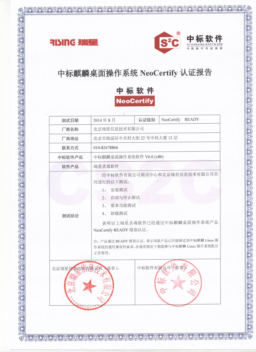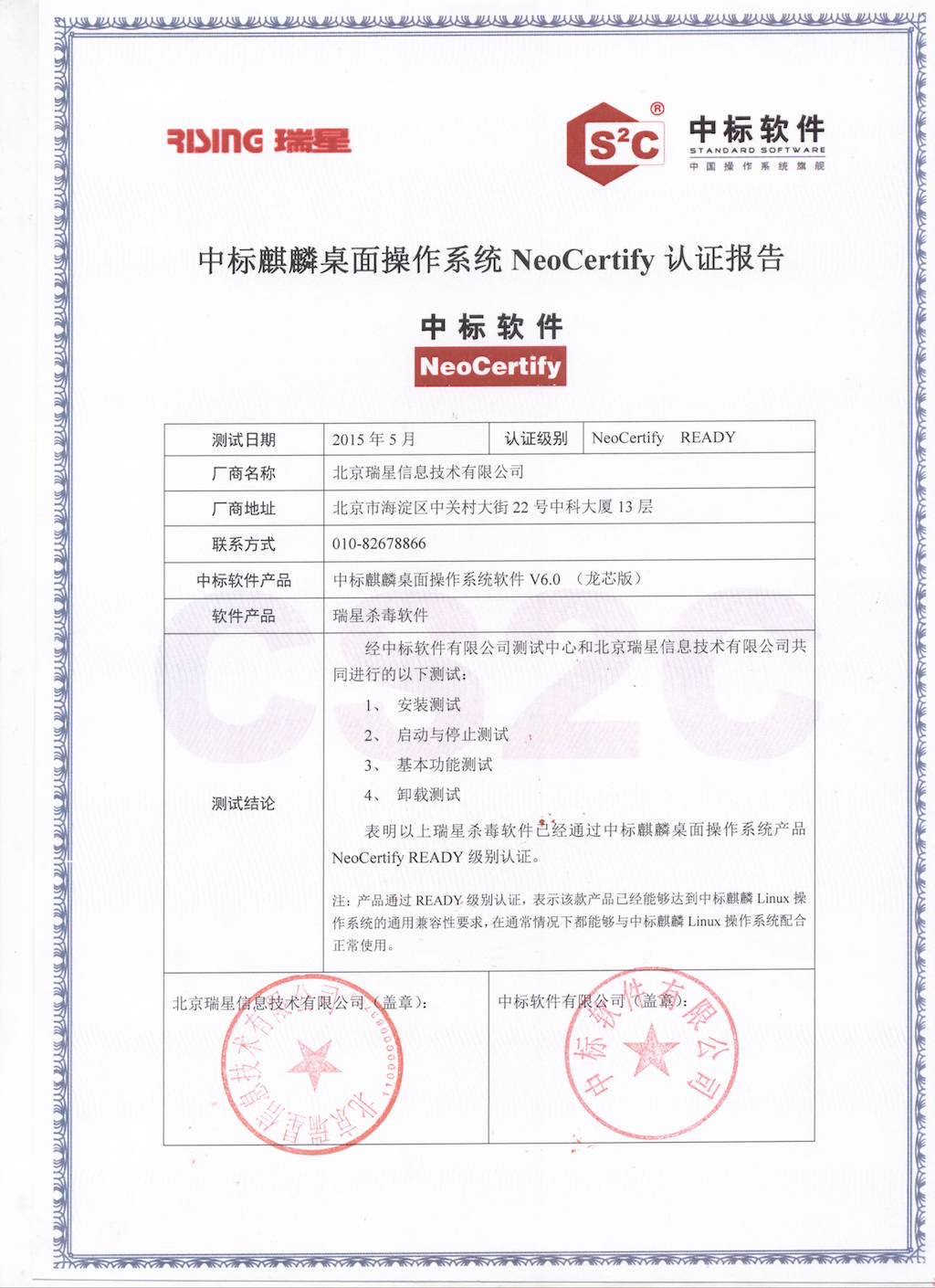 瑞星殺毒軟件 2016-08-26 產(chǎn)品互為認證證明 中標麒麟桌面操作系統(tǒng) V6.0(X86) 2016-08-26 產(chǎn)品互為認證證明 中標麒麟桌面操作系統(tǒng) V6.0(龍芯) 2016-01-27 PChome 2015年度防護之星獎 2015-07-29 最佳人氣獎2007 2015-07-29 中小企業(yè)市場占有率第一 2008-2009 2015-07-29 優(yōu)秀軟件人氣獎 2015-07-29 十大影響力品牌獎 2007 2015-07-29 殺軟網(wǎng)友選擇獎 2015-07-29 殺軟多特軟件站編輯推薦獎 2015-07-29 殺軟2007年度推薦產(chǎn)品獎 2015-07-29 殺軟 站長人氣獎 2010 2015-07-29 殺軟 站長人氣獎 2009 1 2 下一頁 尾頁