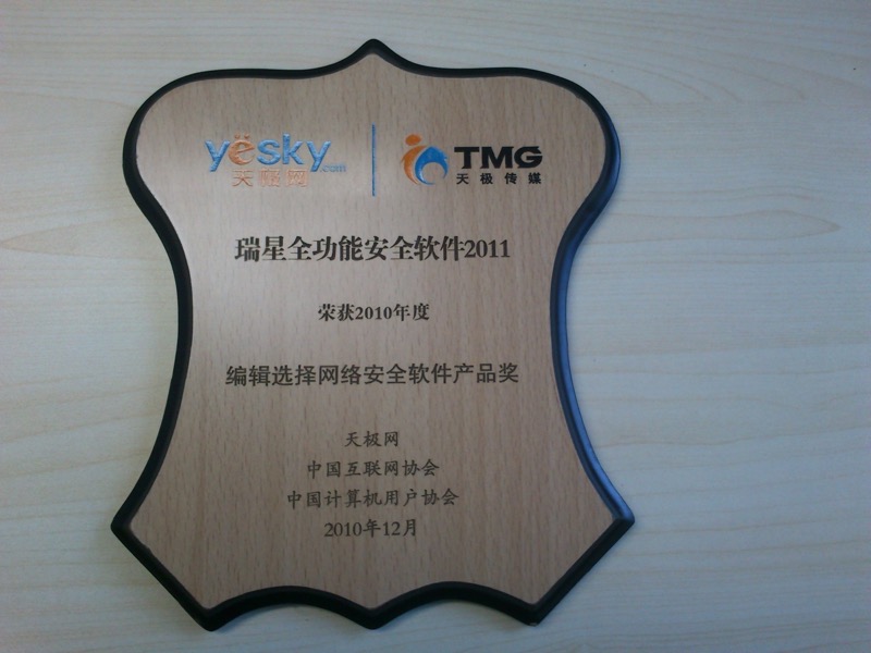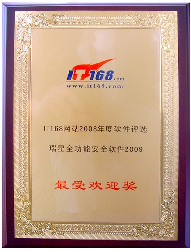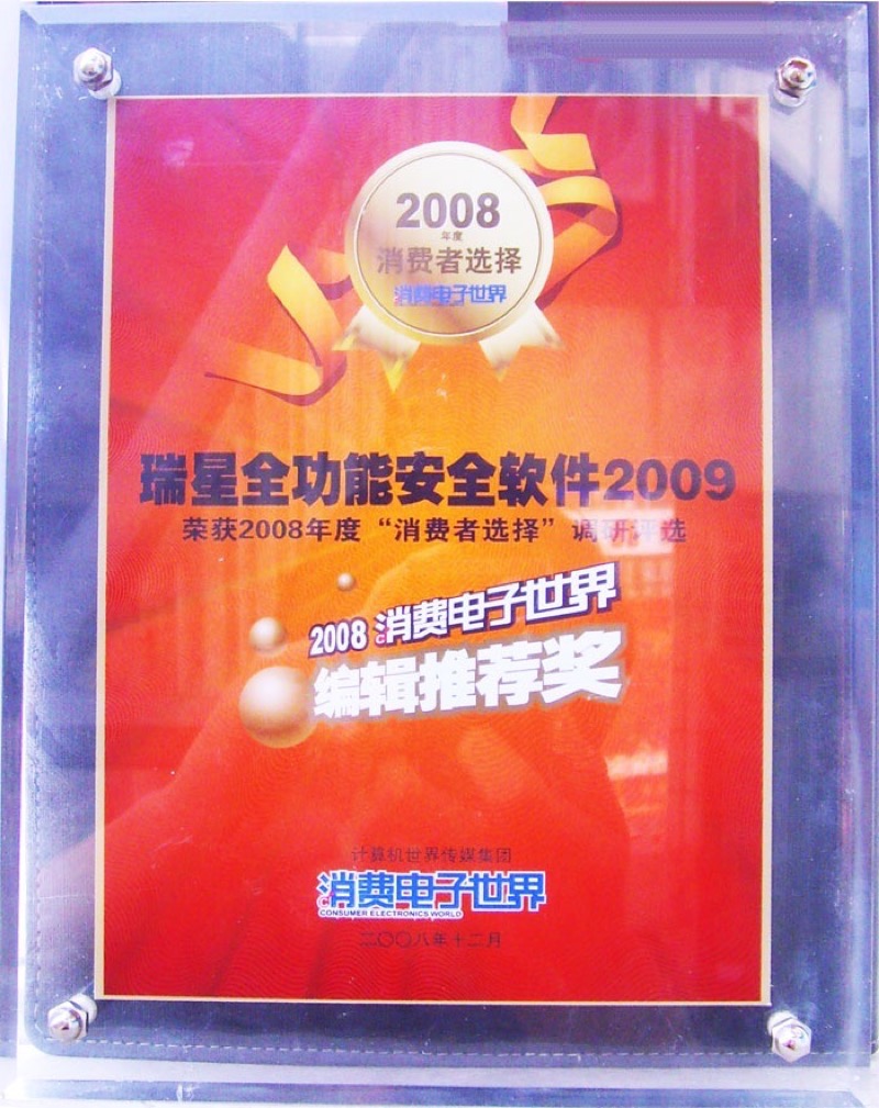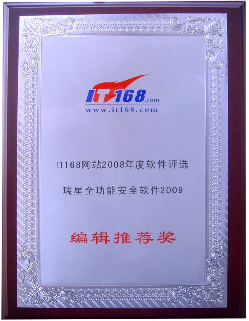 瑞星全功能安全軟件 2015-07-29 全功能云安全技術創新獎 2010 2015-07-29 全功能安全軟件 編輯選擇獎 2015-07-29 全功能安全軟件 it168最受歡迎獎 2015-07-29 全功能2011 編輯選擇網絡安全軟件產品獎 2015-07-29 全功能2010年度最佳 2015-07-29 全功能2009 編輯推薦獎 2015-07-29 全功能 計算機應用文摘編輯推薦獎 2015-07-29 全功能 it168編輯推薦獎