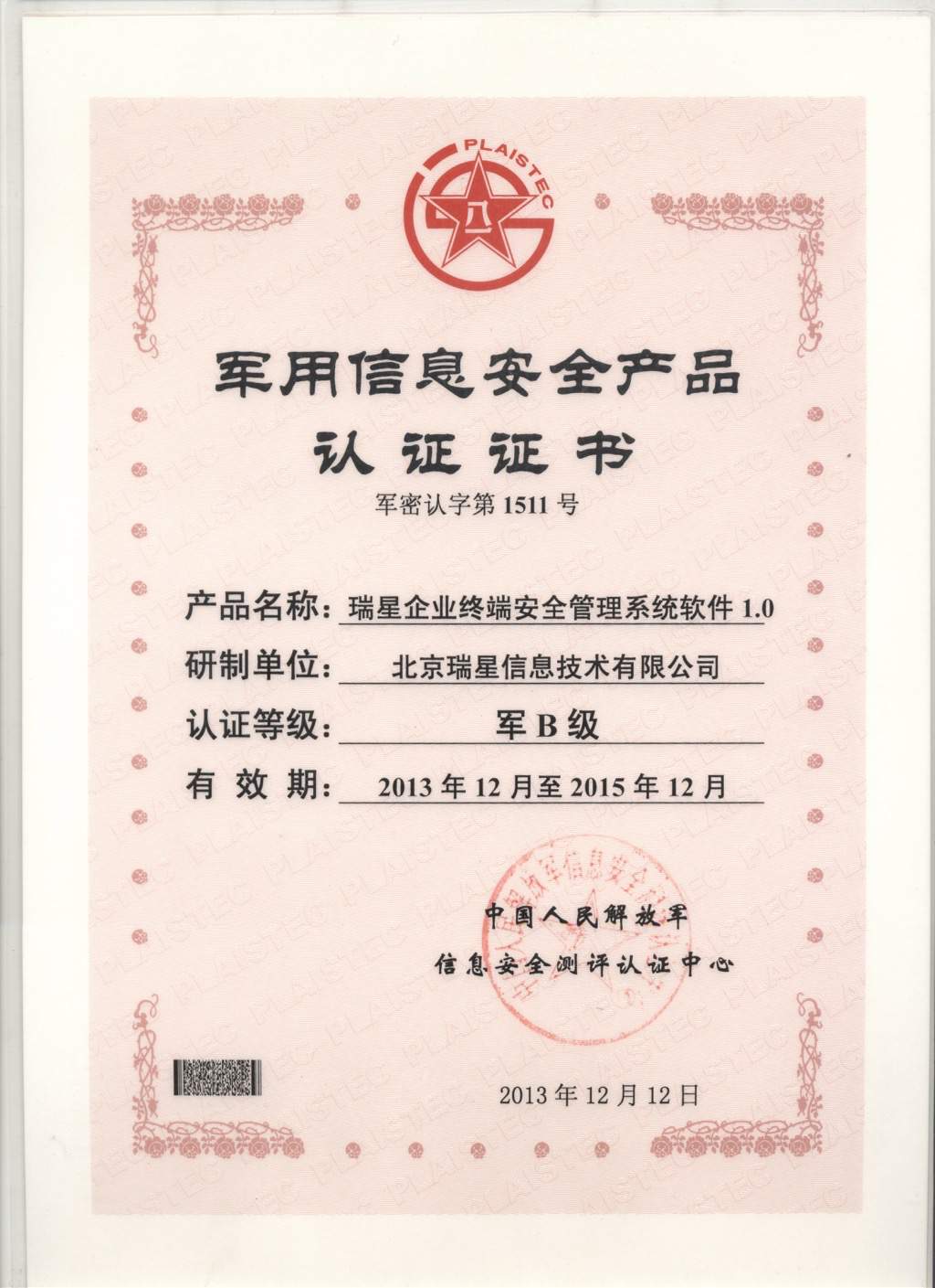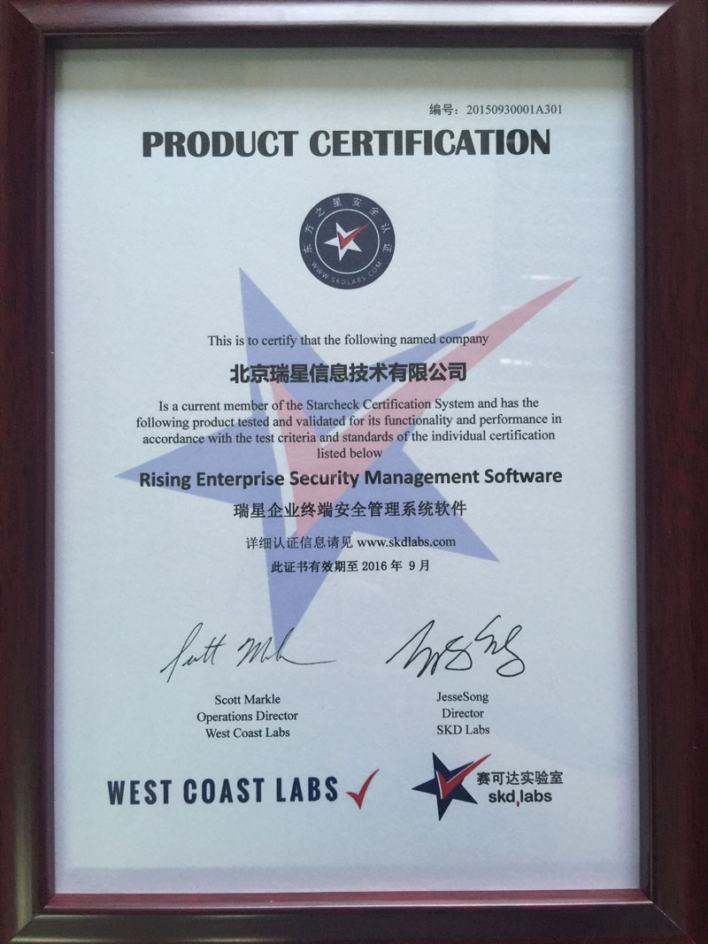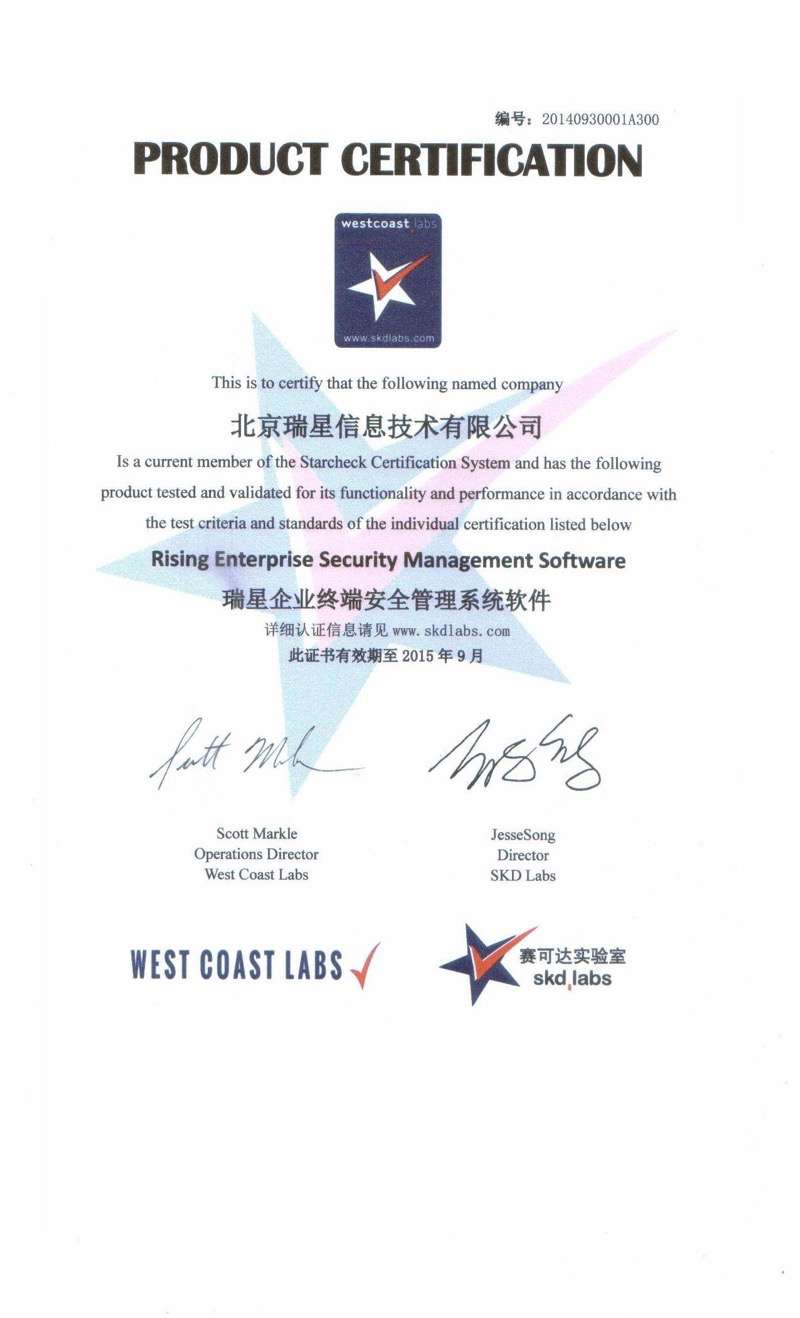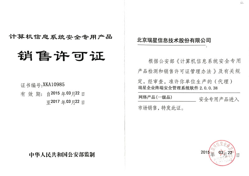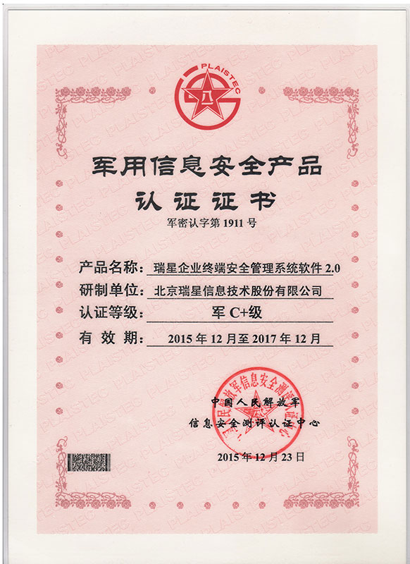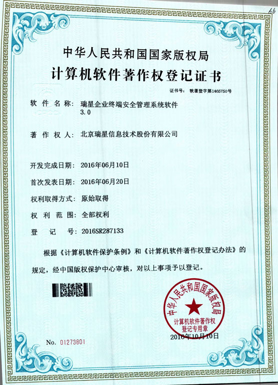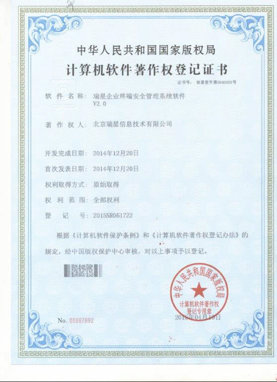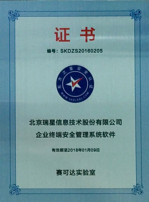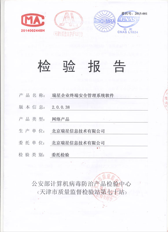 瑞星ESM防病毒終端安全防護系統(tǒng) 2017-01-20 瑞星企業(yè)終端安全管理系統(tǒng)軟件3.0 軟件著作權(quán) 2017-01-12 賽可達東方之星安全認證 2016-05-11 瑞星企業(yè)終端安全管理系統(tǒng)軟件 軍C+ 2016-05-11 瑞星企業(yè)終端安全管理系統(tǒng)軟件2.0 軟件著作權(quán) 2016-05-11 瑞星企業(yè)終端安全管理系統(tǒng)軟件2.0 天津檢驗報告 2016-05-11 瑞星企業(yè)終端安全管理系統(tǒng)軟件2.0 上海檢驗報告 2016-01-25 賽可達實驗室2015年度優(yōu)秀產(chǎn)品獎 2015-11-02 瑞星企業(yè)終端安全管理系統(tǒng)軟件 賽可達實驗室認證 2015-08-13 瑞星企業(yè)終端安全管理系統(tǒng)軟件 賽可達實驗室認證 2015-07-29 瑞星企業(yè)終端安全管理系統(tǒng)軟件 銷售許可證 2015-07-29 瑞星企業(yè)終端安全管理系統(tǒng)軟件1.0 軟件著作權(quán) 2015-07-29 瑞星企業(yè)終端安全管理系統(tǒng)軟件 軍B 首頁 上一頁 2 3 4 5 下一頁 尾頁