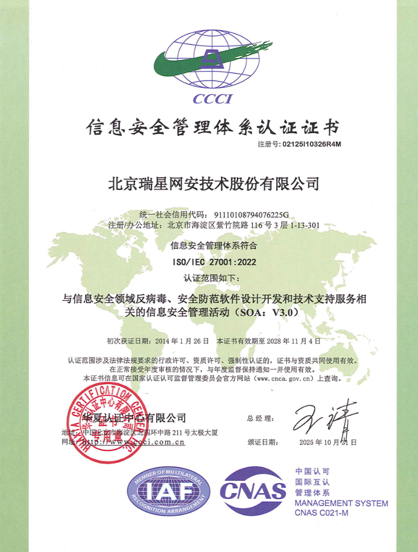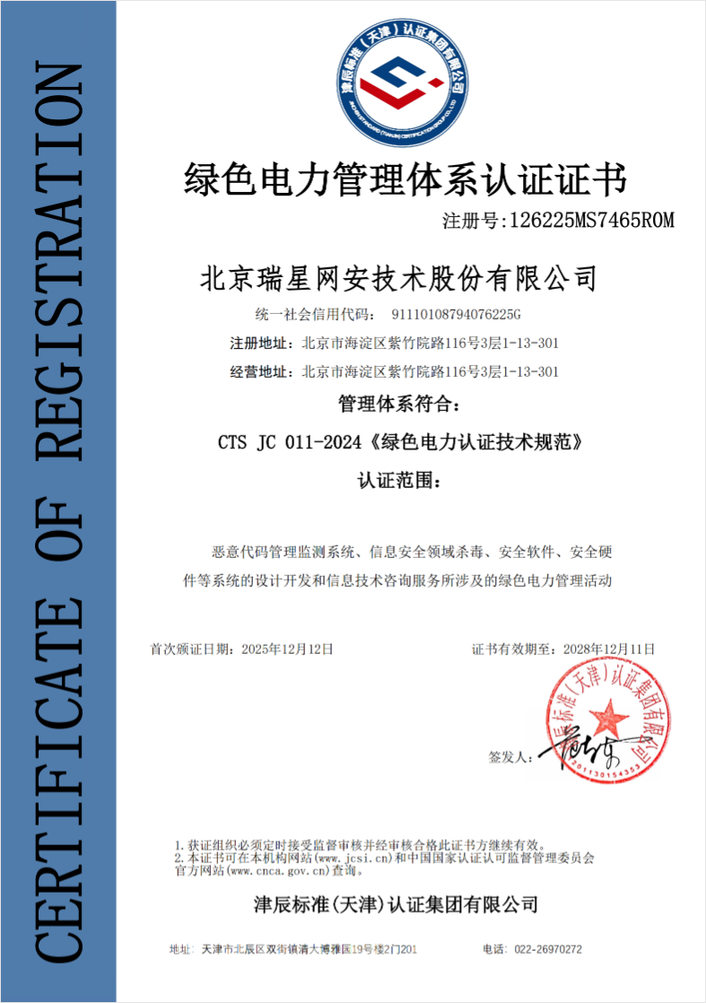 認(rèn)證 2025-12-29 北京市“專精特新”中小企業(yè) 2025-12-18 能源管理體系認(rèn)證 2025-12-18 環(huán)境管理體系認(rèn)證 2025-12-18 職業(yè)健康安全管理體系認(rèn)證 2025-12-12 綠色電力管理體系認(rèn)證 2025-11-03 ISO 9001 2025-11-03 ISO 20000 2025-11-03 ISO 27001 2025-09-29 高質(zhì)量數(shù)字化轉(zhuǎn)型技術(shù)解決方案2025 2025-09-29 高質(zhì)量數(shù)字化轉(zhuǎn)型技術(shù)解決方案2025 2025-03-13 中關(guān)村高新技術(shù)企業(yè)證書 2025-03-13 高新技術(shù)企業(yè)證書 1 2 3 4 下一頁 尾頁