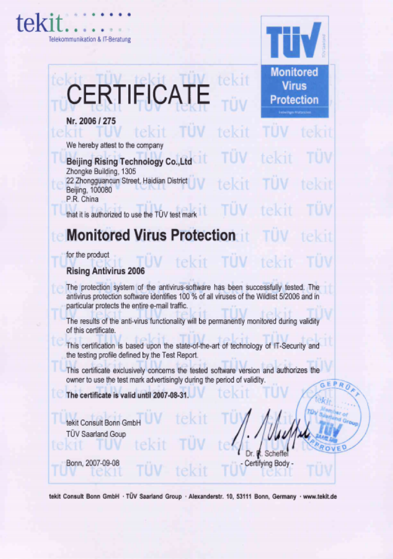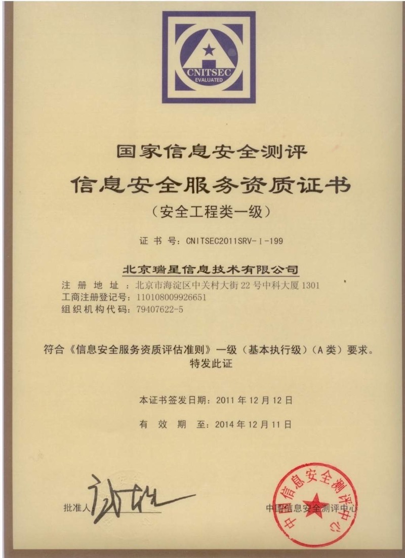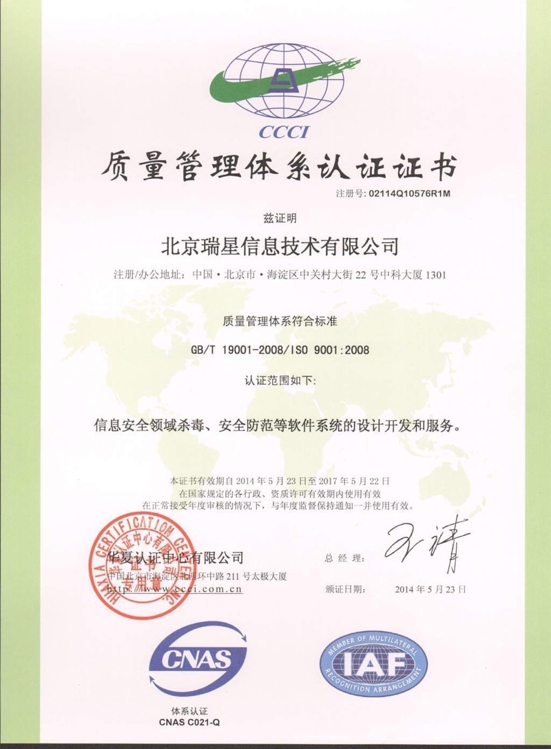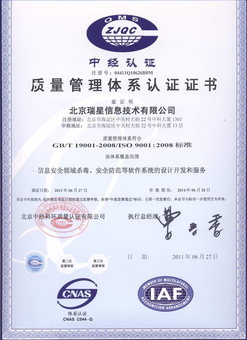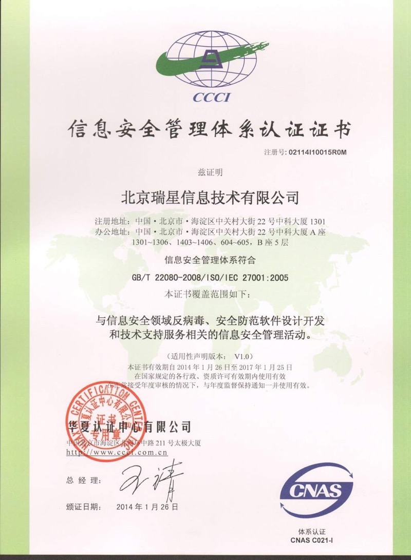 認(rèn)證 2015-07-29 信息安全服務(wù) 一級(jí)證書 2015-07-29 西海岸 2006 2015-07-29 瑞星與VMware合作關(guān)系認(rèn)證 2015-07-29 德國(guó)TUV認(rèn)證 2015-07-29 ISO 27001 2015-07-29 ISO 20000 2015-07-29 ISO 9001 2014年 2015-07-29 ISO 9001 2011年 2015-07-29 AVTest 首頁 上一頁 2 3 4
