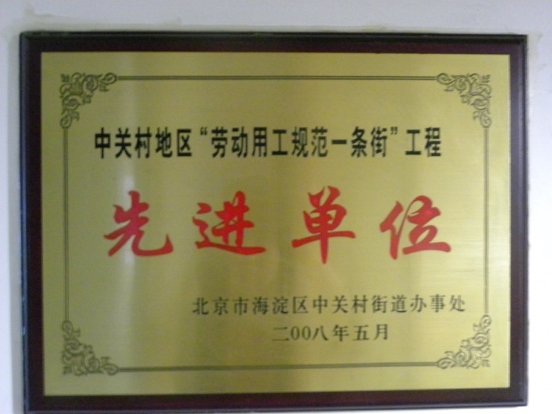 中關(guān)村勞動(dòng)用工模范先進(jìn)單位 2008
